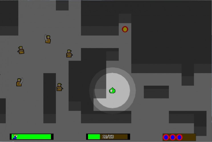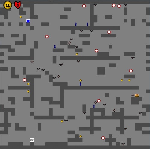 All the levels are fully procedurally generated! You try to get as far as possible while getting stronger and stronger along the way.